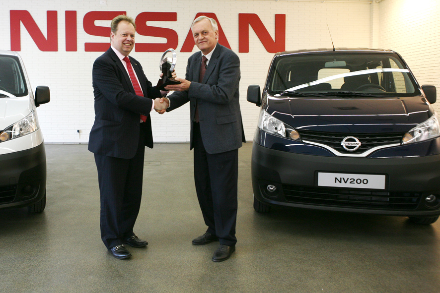 Today, Andy Palmer, Senior Vice President, Nissan Motor Co., Ltd, accepted the International Van of the Year (IVoY) award for Nissan’s segment breaking NV200. The award was given by the IVoY Jury Chairman, Pieter Wieman during a ceremony held at Nissan’s Barcelona plant, where the NV200 is produced for Europe.